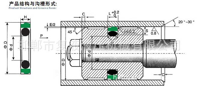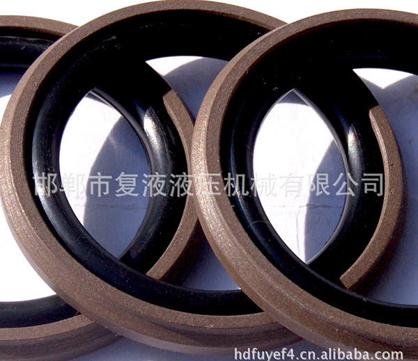 由一個階梯圈與矩形橡膠密封圈組成,矩形橡膠圈提供足夠的密封力,并對四氟階梯圈的磨耗起補(bǔ)償作用,矩形橡膠圈接觸壓力高,抗扭轉(zhuǎn)、負(fù)荷能力較高,與導(dǎo)向環(huán)配套使用。適用于大型液壓缸活密封,單向密封。